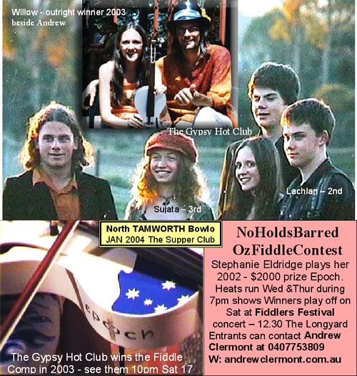 See also http://www.andrewclermont.com.au/videos/supper/fiddlecontest.htm for emovie sample of some previous Winners.