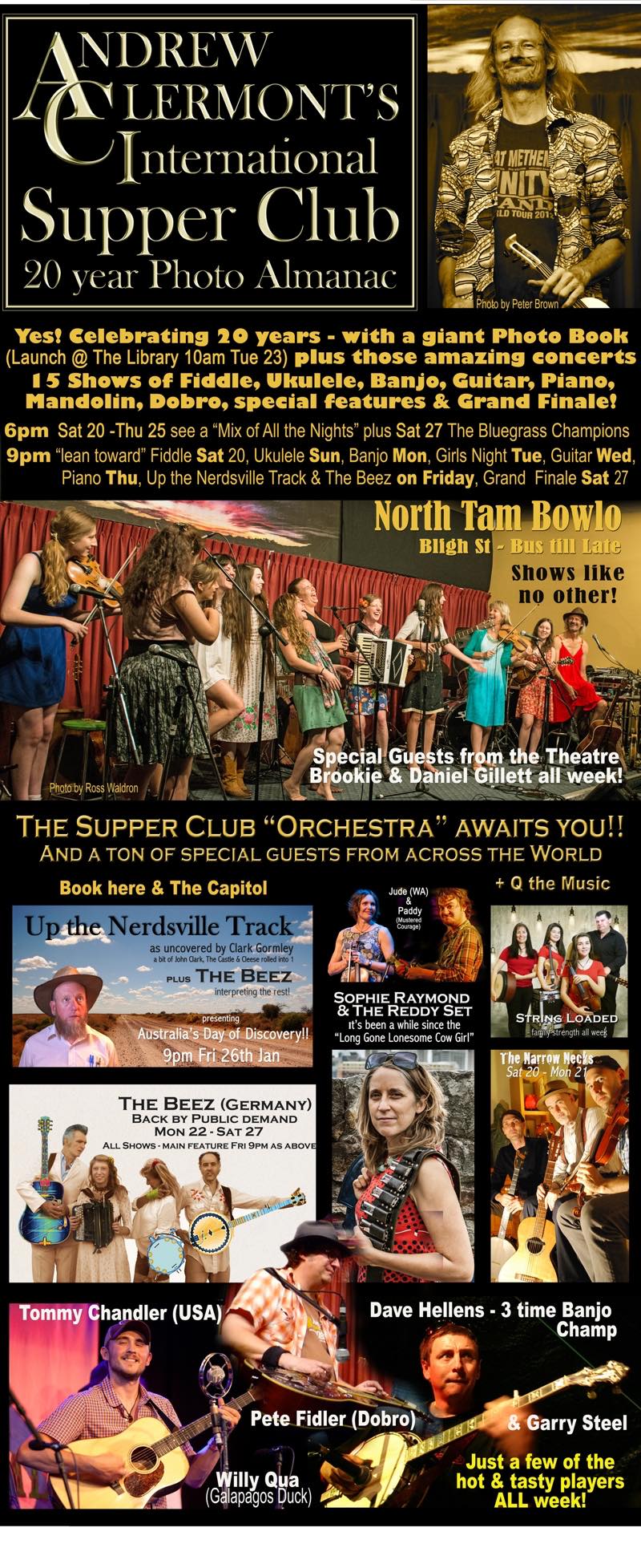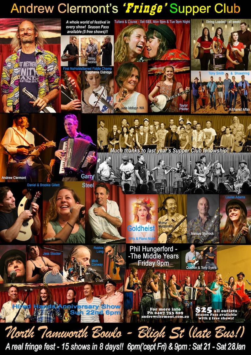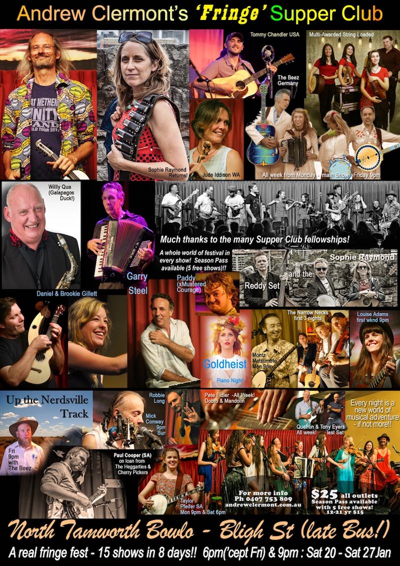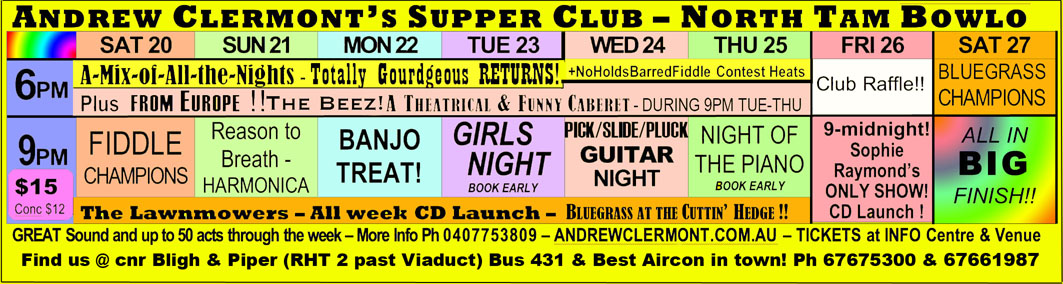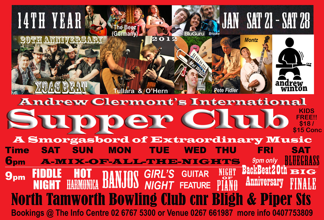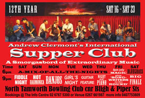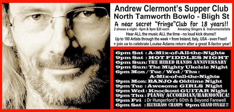 Heats will run at Andrew Clermont's Supper Club - 6pm sessions at the North Tamworth Bowling Club on the middle Wed & Thur of Tamworth CM Festival.