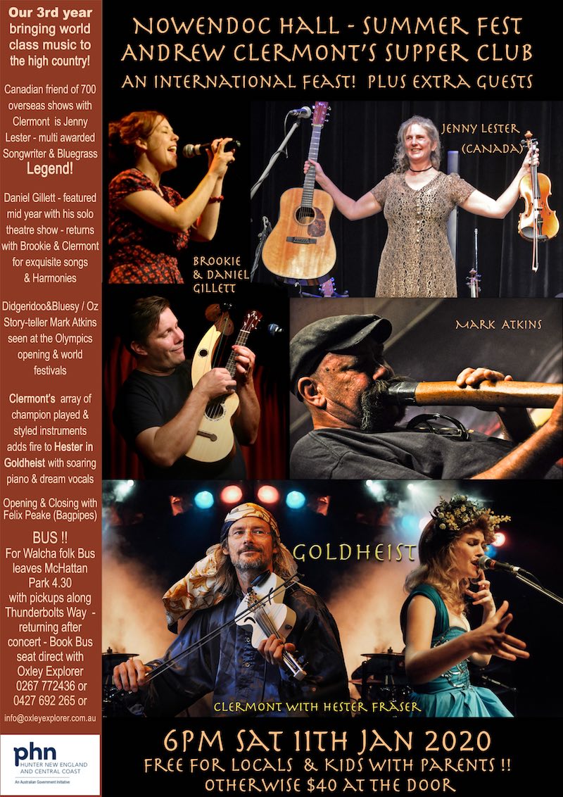 Plus arguably Australia's greatest Didgeridooist, Tamworth's very own Mark Atkins -as at home in New York's Symphony Orchestra, or Vienna, or Berlin as out back of Dungowan and right here. Performing across the world through Sydney's 2000 ParaOlympics and the Grecian Olympics. He'll be adding jaw-dropping spice.