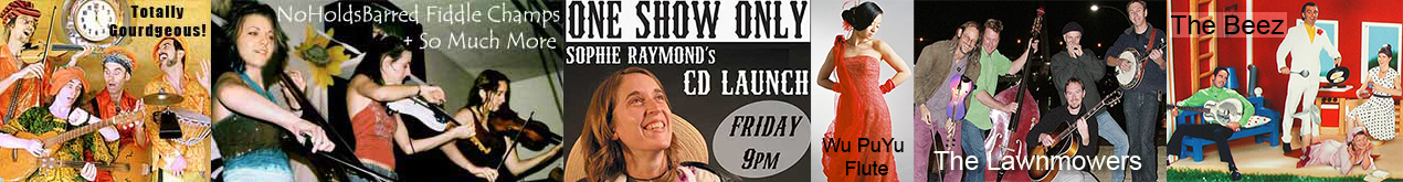Tue 9pm THE GIRLS NIGHT with Sarah Carroll (GIT) ; The Eldridge Sisters (Fid Champ & Cello); Penelope Swales; "Hannah" Telford; Pu-Yu Macleod - a favourite from Taiwan, Leslie Avril (French songs!), Jess Randall (FIddle Champ 2005) and usually wonderfully more!